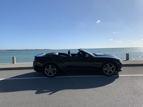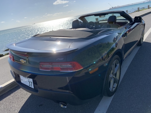 5代目カマロ。エクステリアは初代のデザインをモチーフにロングノーズ&ショートデッキなクラシカルなデザインとなっております。コンバーチブルなので解放感あるドライブはもちろん、3.6L V6なので走りにストレスはありません。沖縄でのドライブを間違いなく満喫できます。